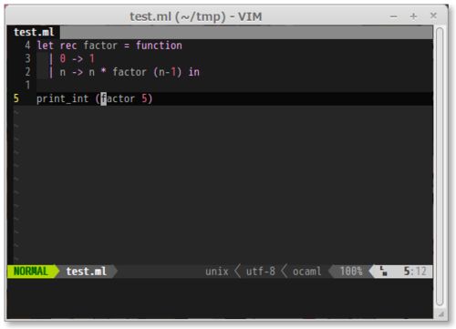 この記事は Vim Advent Calendar 2012 の 185 日目の記事です。 昨日は id:deris さんの Vimでできる脱出系パズルゲーム でした。 はじめに OCaml という静的型付けの関数型言語があります。同じく静的な型をもつ関数型言語である Haskell とは異なり、副作…